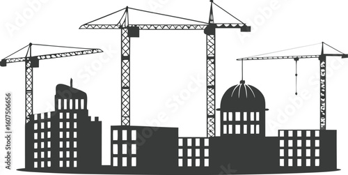 Obraz premium Silhouette of construction cranes and buildings architecture