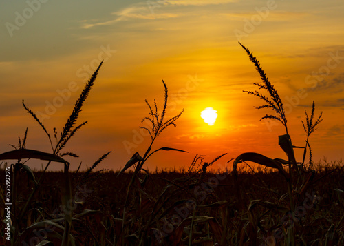 © Oleksandr, Obraz premium Silhouette of corn during sunset