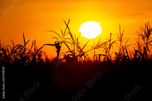 © Oleksandr, Obraz premium Silhouette of corn during sunset