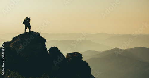 © Andrei, Fototapeta premium Silhouette of couple on top of mountain