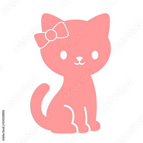 Fototapeta premium Silhouette of cute pink kitten with bow – perfect for baby clothes, animal logos, and nursery wall art.