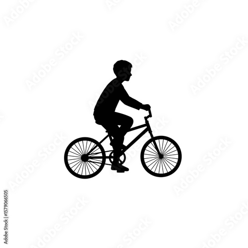 © Shahid, Fototapeta premium Silhouette of Cyclist: A minimalist silhouette of a cyclist, captured in stark black against a contrasting background, exudes a sense of motion, freedom, and the joy of cycling.