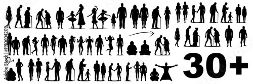 © foxndeer, Obraz premium silhouette of diverse people groups in various poses and different daily activities