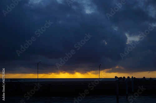 Fototapeta premium Silhouette of dock in the sea during sunset