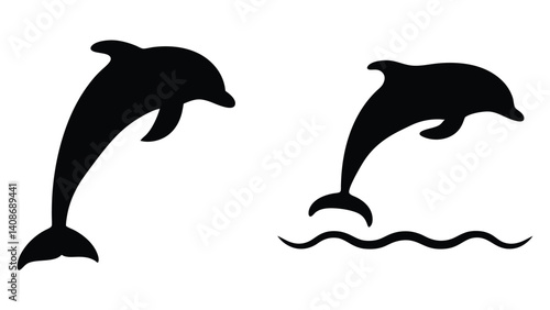 © Zahid, Fototapeta premium silhouette of dolphins isolated on white background