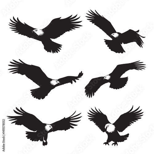 © design box, Fototapeta premium Silhouette of eagle vector icon set illustration isolated on white background.