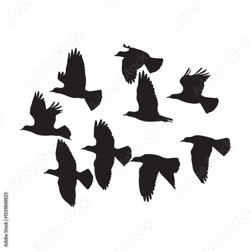 Obraz premium "Silhouette of Eight Birds in Flight on White Background – Dynamic Wing...