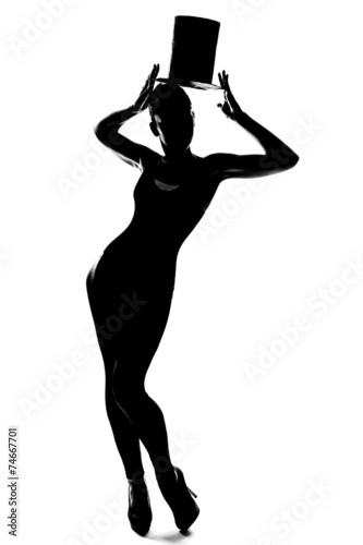Fototapeta premium Silhouette of fashionable girl with cylinder