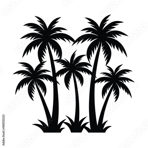 © Md. Abu Taleb, Fototapeta premium Silhouette of five palm trees on white background