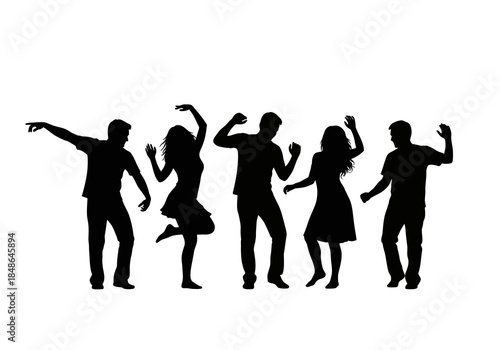© Adi, Obraz premium Silhouette of Five People Dancing and Celebrating Together in a Group.