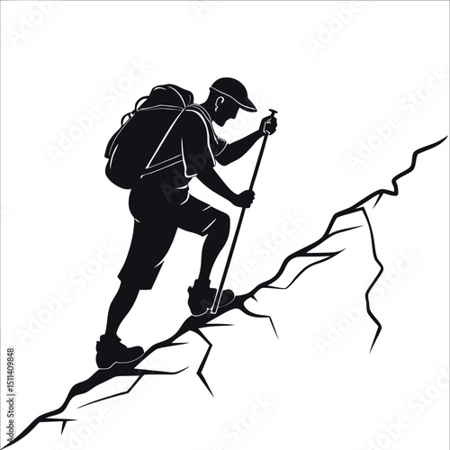 Fototapeta premium Silhouette of Hiker Ascending Rocky Mountain Trail