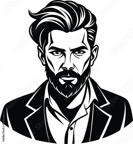 © ShaJu, Fototapeta premium silhouette of hipster man head white background
