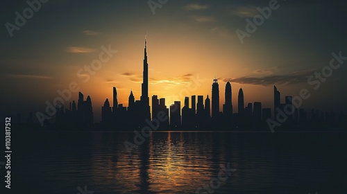 Naklejka premium Silhouette of iconic urban skyline, neutral background, high contrast,...