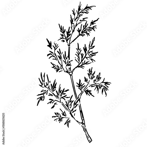 © Natali, Fototapeta premium Silhouette of inflorescence and leaves of dill. Black and white botanical illustration twig of dill. Medicinal plant. Vitamin seasoning for cooking. Ingredient for receipt.