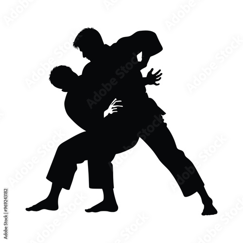 © StockNinja, Fototapeta premium Silhouette of Judo Fighters in Action