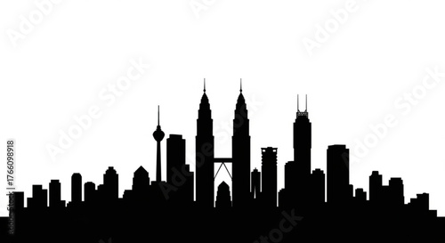 © shahbaz, Fototapeta premium Silhouette of kuala lumpur skyline featuring petronas towers and kl tower against a white background