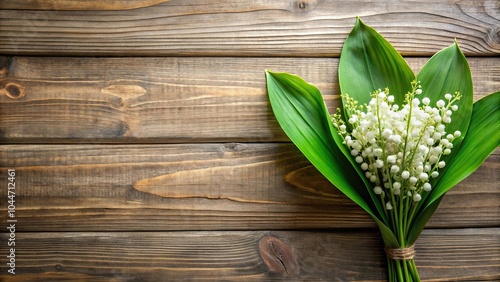 © Latsamee, Naklejka premium Silhouette of lily of the valley bouquet and leaves on wooden background