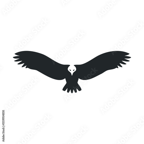 Obraz premium Silhouette of majestic eagle spread wings in flight against white background.