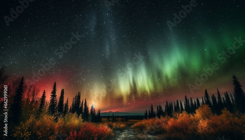 © djvstock, Fototapeta premium Silhouette of majestic mountain range illuminated by vibrant star field generated by AI