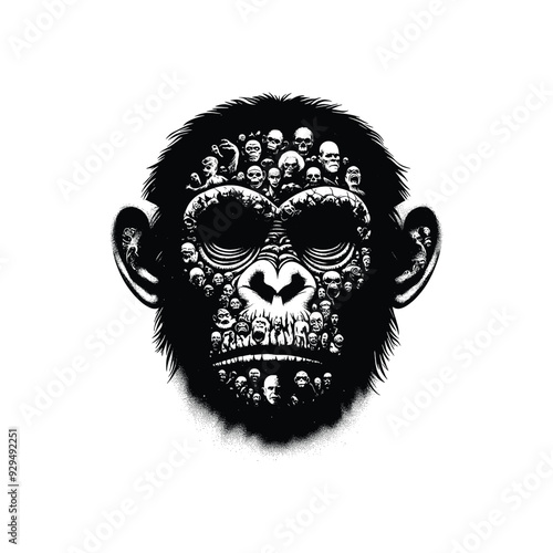 © orion, Fototapeta premium silhouette of monkey, filled with vintage horror movie poster in rough drawing,