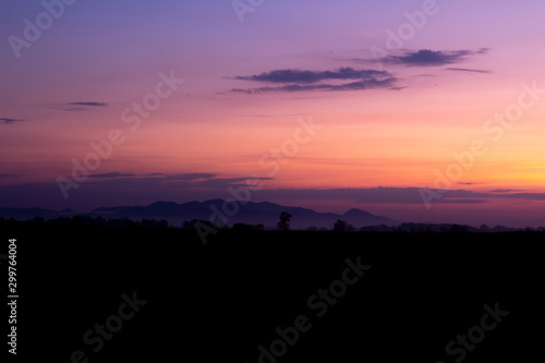 Fototapeta premium Silhouette of mountain and the pink sky in the morning