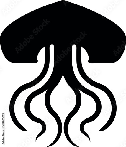 © Dream Hub, Obraz premium Silhouette Of Octopus Creature With Flowing Tentacles On An Isolated White Background