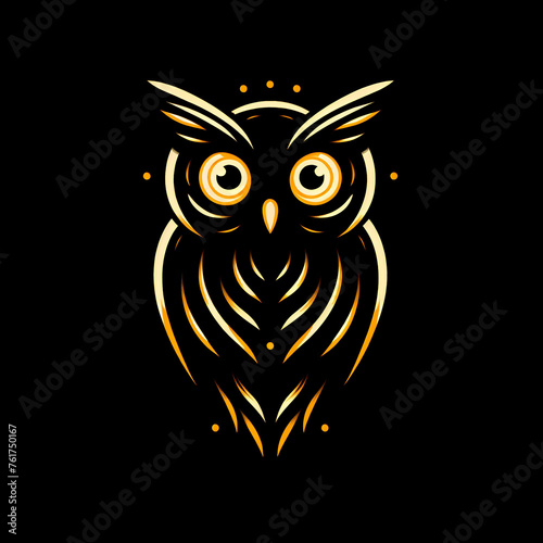 Fototapeta premium silhouette of owl with glowing eyes in the dark on black background