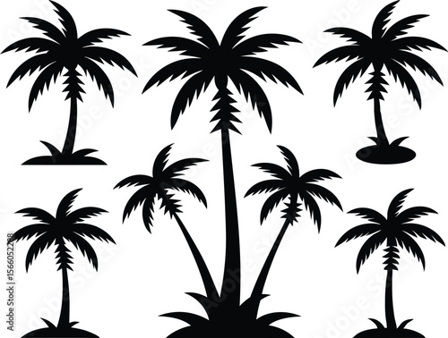 Fototapeta premium Silhouette of palm trees, Collection of silhouette palm trees arranged in different styles and sizes for tropical-themed design