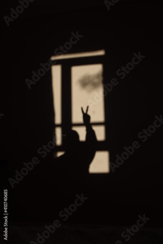 © gokcan, Naklejka premium silhouette of people doing victory sign