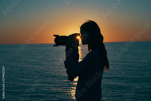 Obraz premium silhouette of photographer at sunset