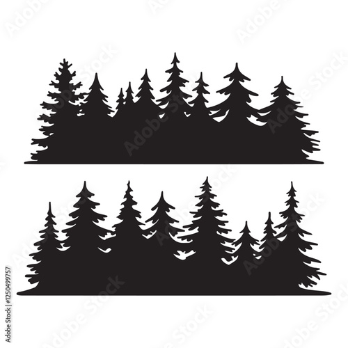 © Robbany Hossain, Fototapeta premium Silhouette of Pine Tree Forest Woodland Nature Illustration on white background