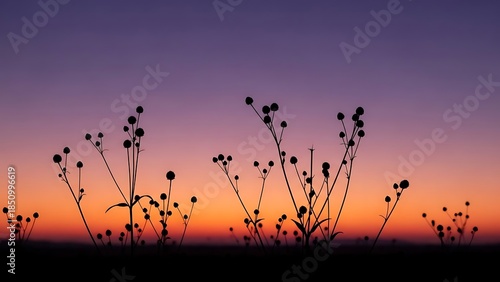 Obraz premium Silhouette of plants against a colorful sunset flowers purple