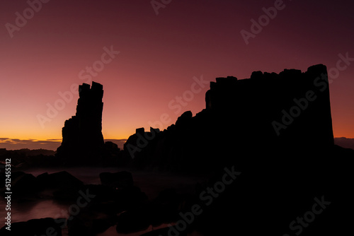 © AlexandraDaryl, Obraz premium Silhouette of rock formation on the shore.