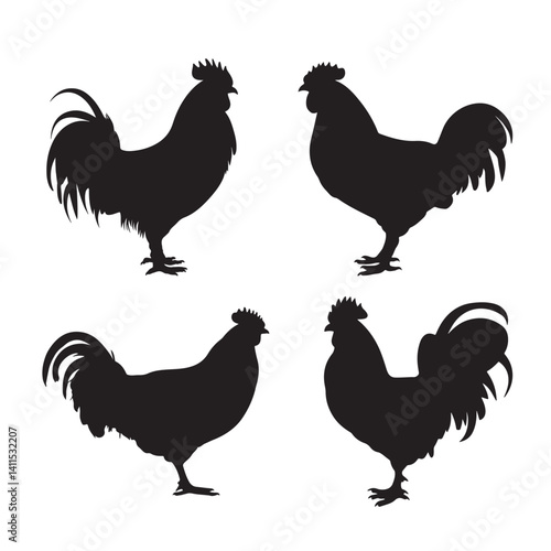 Fototapeta premium Silhouette of Rooster and chicken hen vector icon set illustration on white background.