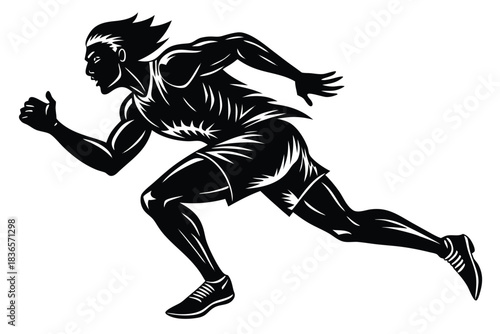 Obraz premium Silhouette of Running Man with Motion Lines on White Background; Speed &...