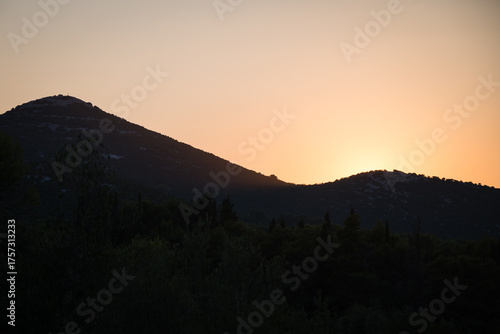 © ventura, Fototapeta premium Silhouette of Scah hill on the Ugljan island at sunset, Croatia