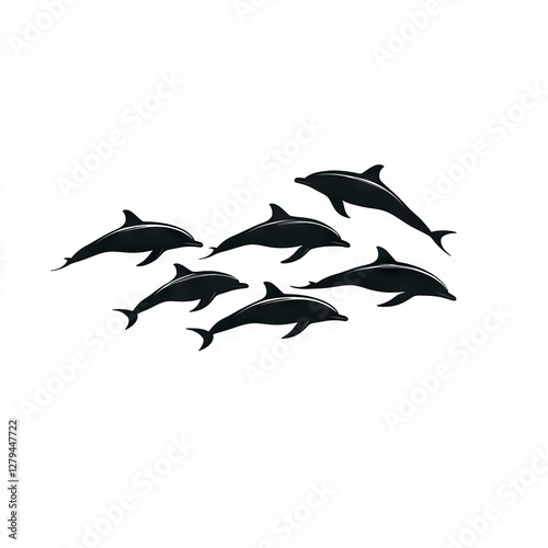 © Adames Art Studio, Fototapeta premium Silhouette of several dolphins in a pod, moving in the same direction.