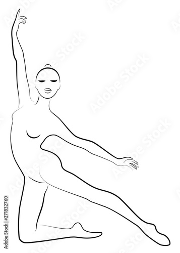 Fototapeta premium Silhouette of slender lady. Girl gymnast. The woman is flexible and graceful....