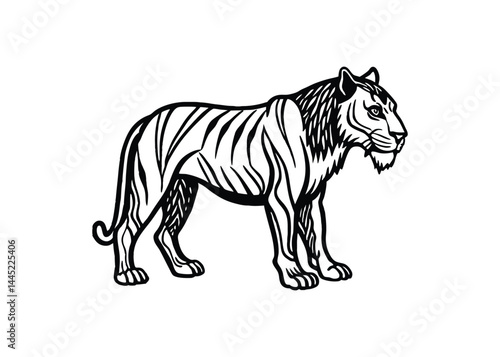 © Maisha Farzana, Naklejka premium Silhouette of smilodon isolated on a white background