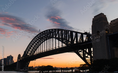 Naklejka premium Silhouette of Sydney Harbour Bridge at sunset time.