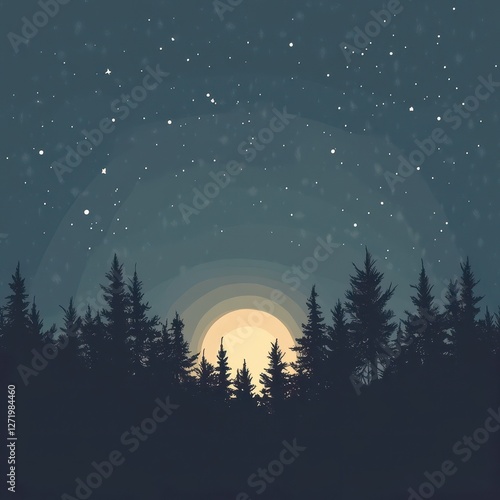 © RizArt, Naklejka premium Silhouette of tall trees against starry night and moon