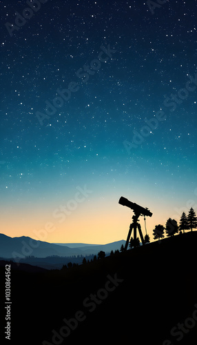 Obraz premium Silhouette of telescope and countryside under the starry skies isolated with...