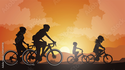 Obraz premium Silhouette of the cycling a bicycle Vector illustration, world bicycle day.