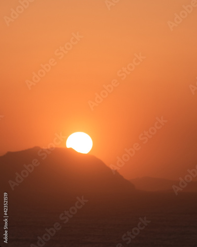 Obraz premium Silhouette of the sun in a beautiful red sunset. Sunset in the coast of the basque country in spain.