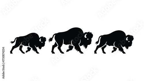 © Hena, Naklejka premium Silhouette of three bison in motion across a field