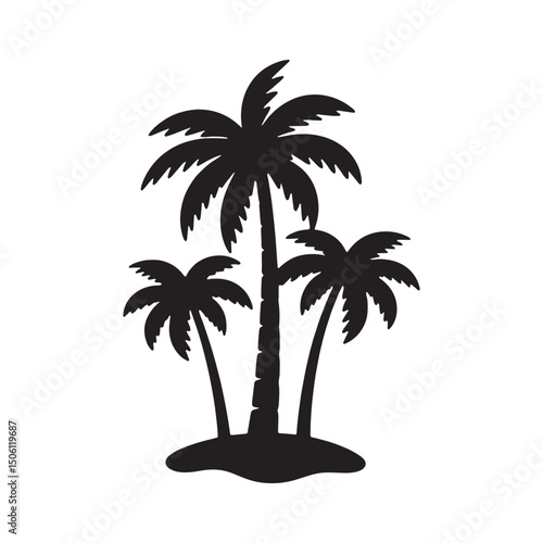 Obraz premium Silhouette of Three Palm Trees on a Tropical Island