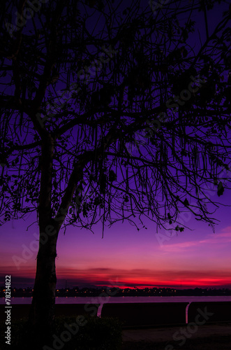 © bookzaa, Fototapeta premium Silhouette of tree at sunrise