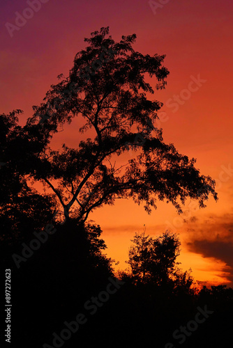© Harry, Fototapeta premium Silhouette of tree with sunset sky