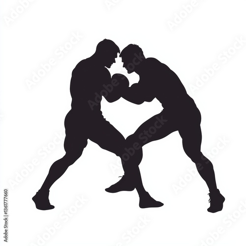 Fototapeta premium Silhouette of Two Wrestlers Grappling in Dynamic Action Pose