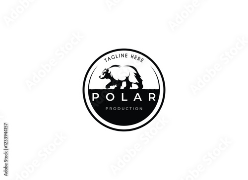 Fototapeta premium Silhouette of Walking White Polar Bear Minimalist logo design vector illustration